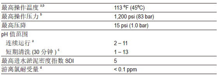 ● pH高于10条件下连续运行的最高温度为95°F(35°C),高于此温度,请咨询技术工程师获取建议