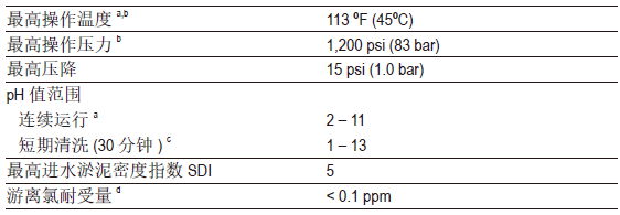 ● pH高于10条件下连续运行的最高温度为95°F(35°C),高于此温度,请咨询技术工程师获取建议