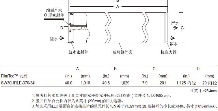 FilmTecTM SW30HRLE-370/34i膜元件有以下优点: