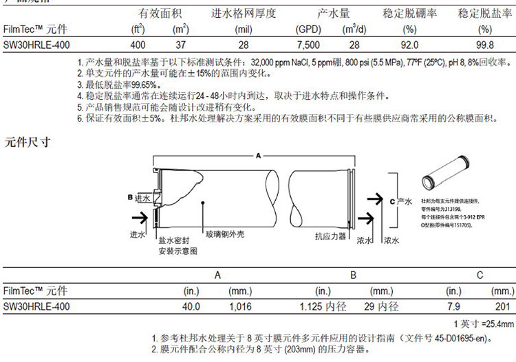 ● FilmTecTM 8”元件使用指南(文件号45-D01706-en)
