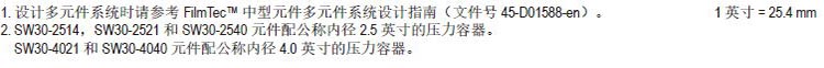 ● 单支压力容器可承受的最大压降为50psi (3.4bar)