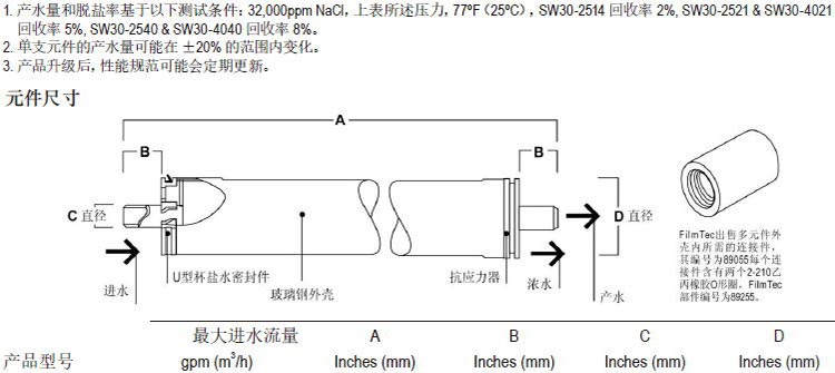 ● 杜邦FilmTecTM SW30膜元件产水量最大,以满足海上和陆地安装的海水淡化的需要