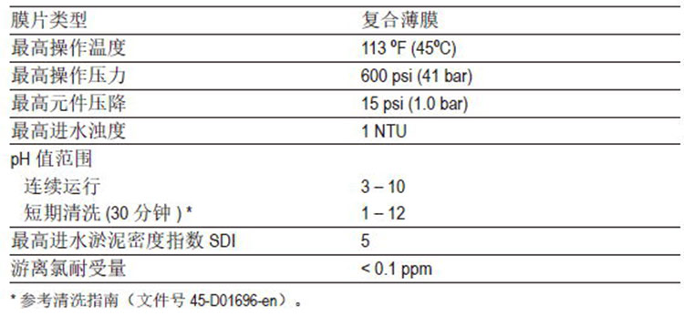 ● 这些膜元件高通量高,产品水水质极高,适合于要求卫生级膜元件的应用