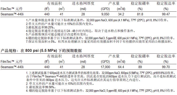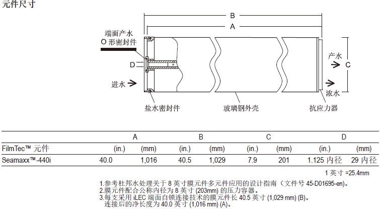 此外,FilmTecTM SeamaxxTM-440i元件还具备着FilmTecTM元件典型的优点: