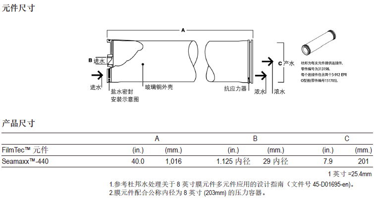 此外,FilmTecTM SeamaxxTM-440元件还具备着FilmTecTM元件典型的优点: