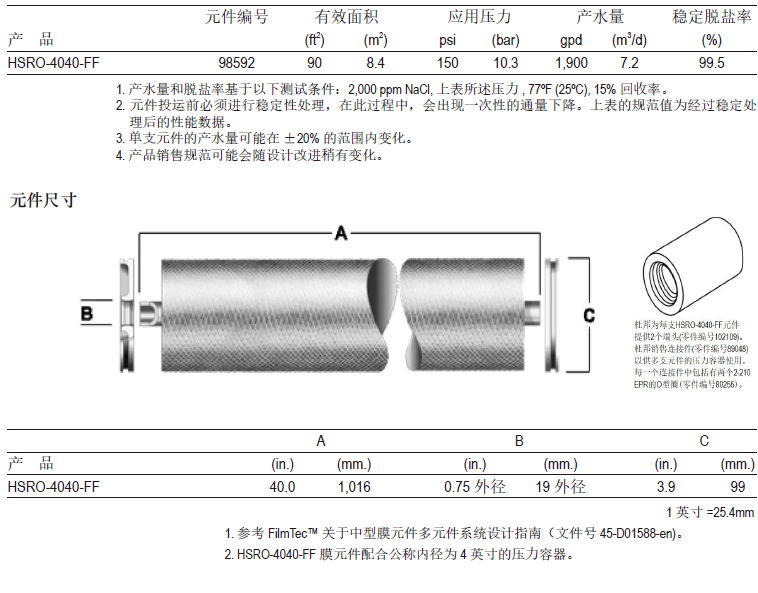 杜邦FilmTecTM HSRO热消毒型反渗透膜元件能额外经受热水的消毒处理,因此可以提供极其优质的产品水水质。热水消毒处理避免了使用化学品杀菌消毒。元件采用了full-fit结构,可最小化死水区,是有卫生设计要求应用场合的最佳产品选择。所有组件均符合FDA标准。