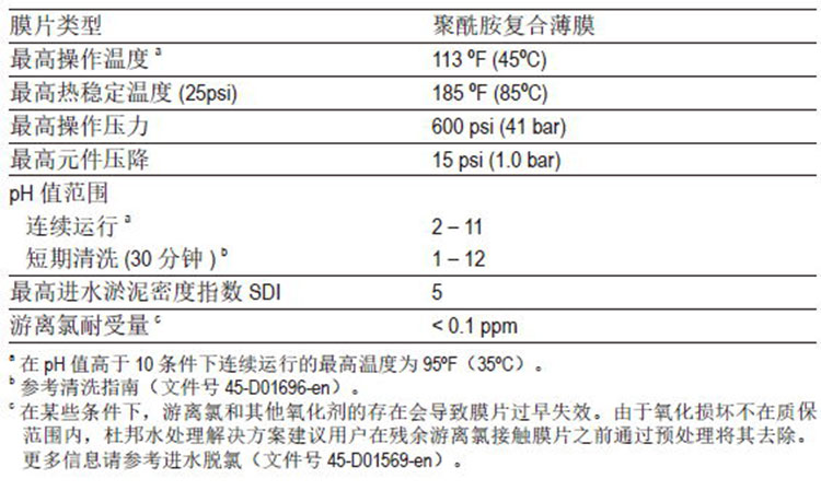 ● 在很低压力下用温水(45℃或以下)作循环处理,最高进水压力为45psi(3bar),膜两侧压差必须小于25psi ( 1.7bar