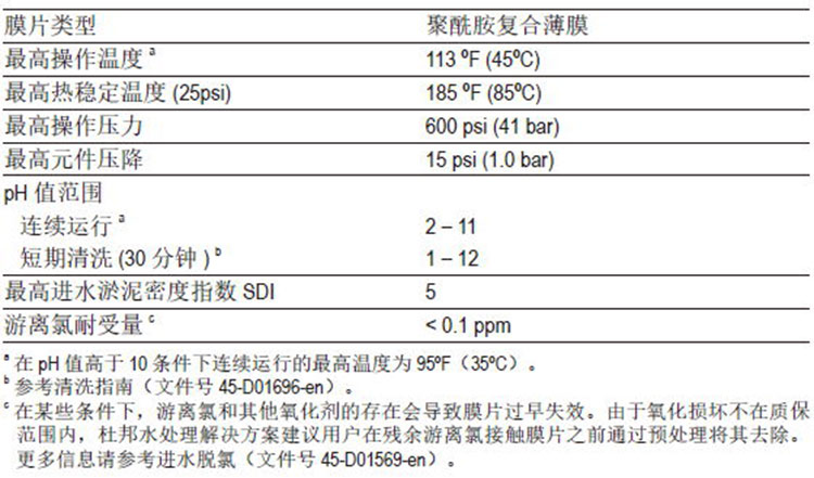● 由于氧化损坏不在质保范围内,杜邦水处理解决方案建议用户在残余游离氯接触膜片之前通过预处理将其去除