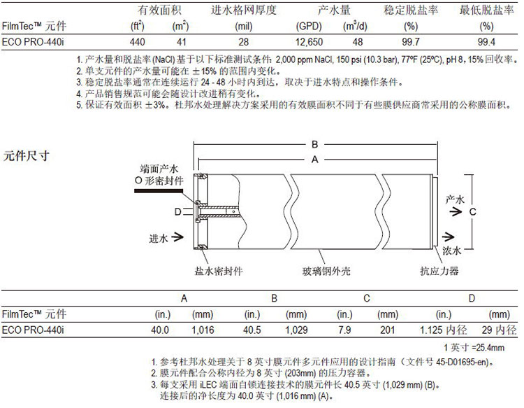 杜邦FilmTecTM ECO PRO-440i元件具有优异的性能: