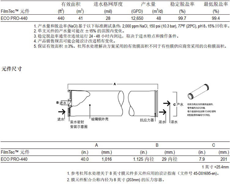 杜邦FilmTecTM ECO PRO-440元件具有优异的性能: