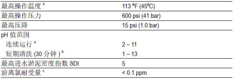 ● pH高于10条件下连续运行的最高温度为95°F(35°C),高于此温度,请咨询技术工程师获取建议