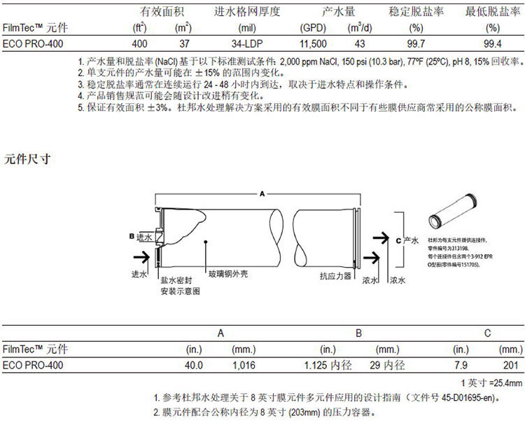 杜邦FilmTecTM ECO PRO-400元件具有优异的性能: