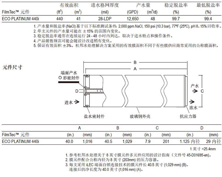 杜邦FilmTecTM ECO PLATINUM 440i元件具有优异的性能: