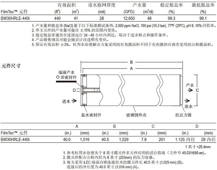杜邦FilmTecTM BW30HRLE-440i元件经证明,具有优异的性能: