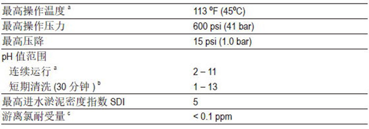 ● pH高于10条件下连续运行的最高温度为95°F(35°C)
