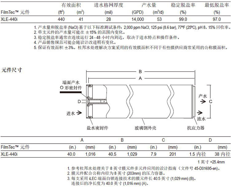 杜邦FilmTecTM XLE-440i是最低压力的FilmTecTM反渗透元件: