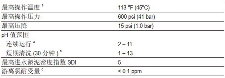 ● pH高于10条件下连续运行的最高温度为95°F(35°C),高于此温度,请咨询技术工程师获取建议