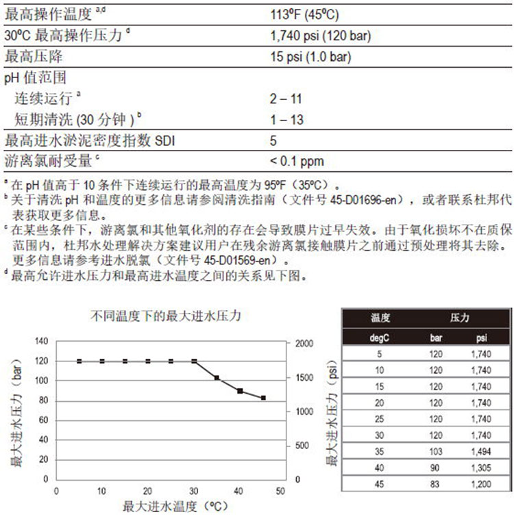 ● pH高于10条件下连续运行的最高温度为95°F(35°C),高于此温度,请咨询技术工程师获取建议